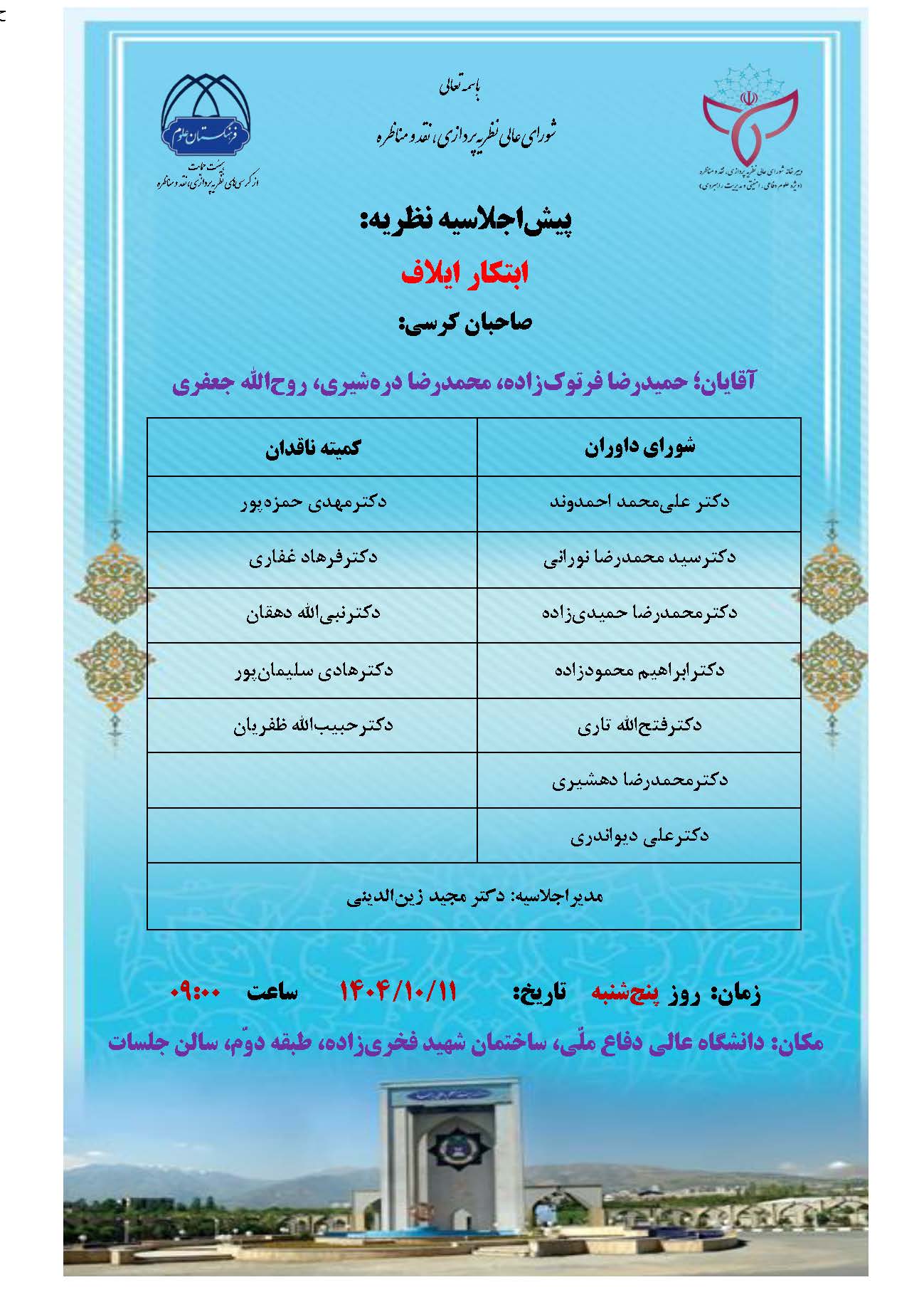 پیش اجلاسیه نظریه: ابتکار ایلاف ۳۰ آذر ۱۴۰۴ | ۰۷:۵۵ کد : ۷۵۰۶ اطلاعیه های مهم ارسال به دیگران نام شما ایمیل شما ایمیل دریافتکننده ارسال انصراف تعداد بازدید:۷۲